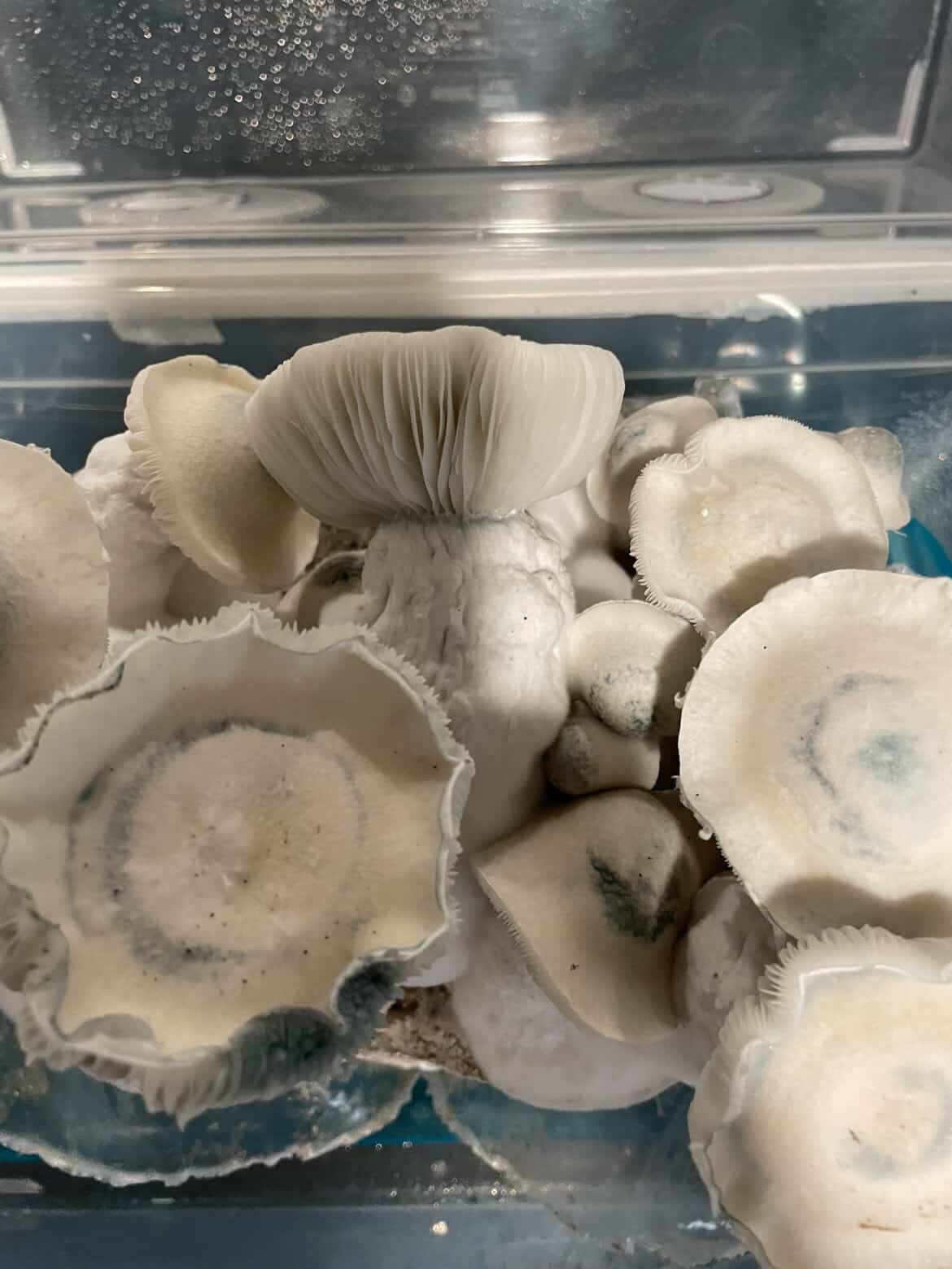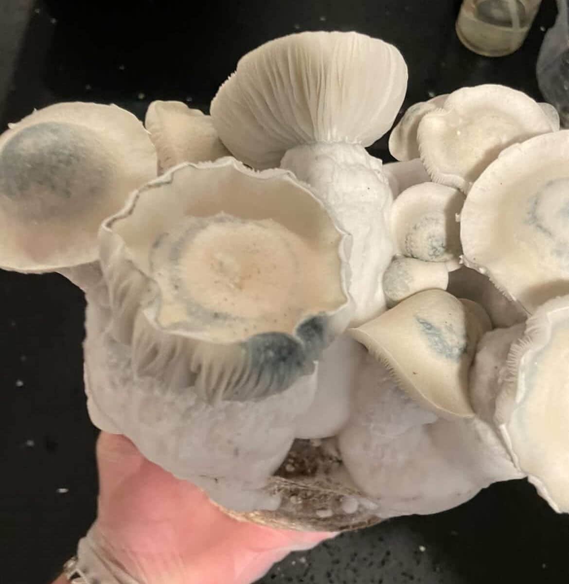 - Bruising: Blue oxidation is commonly reported when tissue is handled or damaged (a typical P. cubensis response)